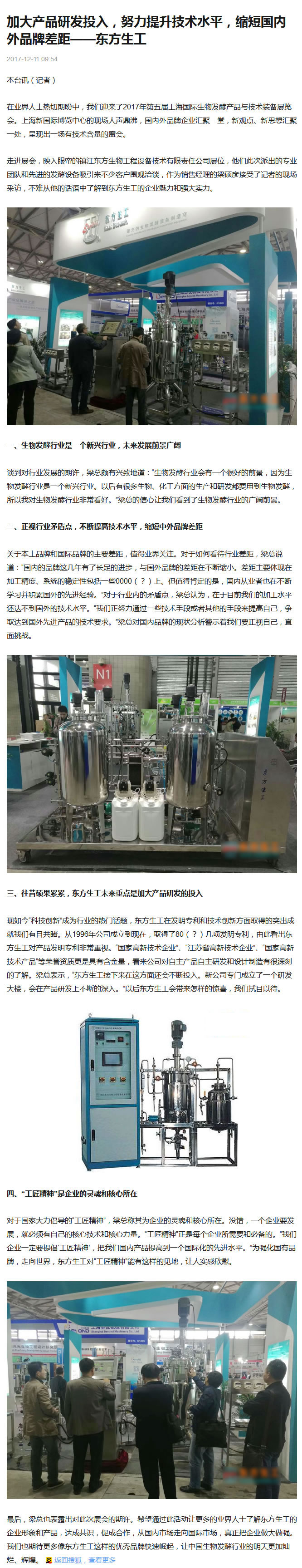 梁硕彦副总在2017年第五届上海国际生物发酵产品与技术装备展览会上接受了搜狐记者的采访,报导原文请浏览: